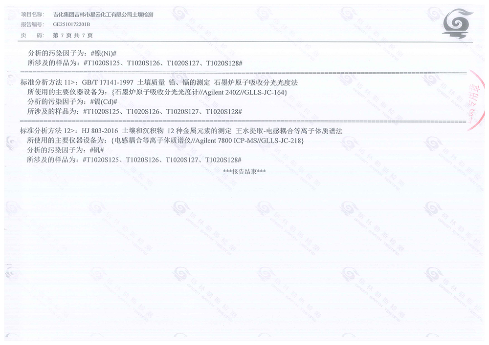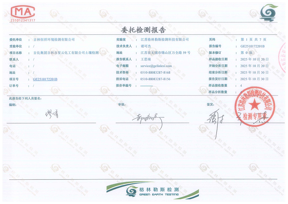 關(guān)于吉化集團(tuán)吉林市星云化工有限公司2025年土壤檢測(cè)報(bào)告公示